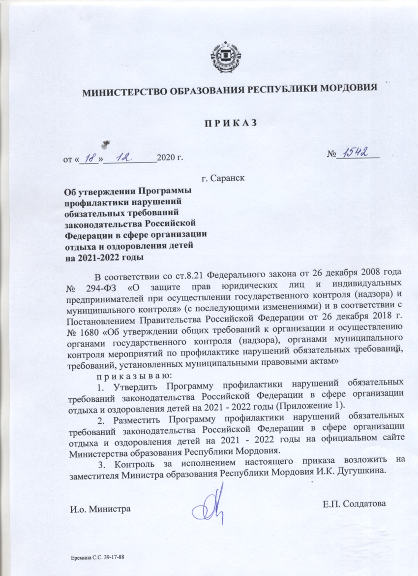 Приказ №1542 от 18.12.2020